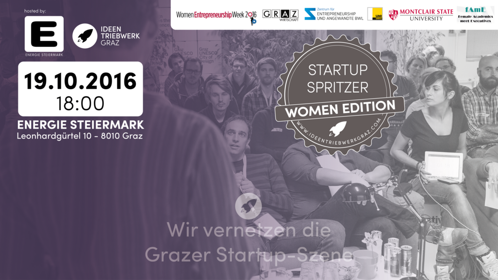 Die „Women Edition“ hosted by Energie Steiermark AG ist eine Kooperation des IdeenTriebwerk Graz mit dem Zentrum für Entrepreneurship und angewandte BWL der Uni Graz und wird im Zuge der „Women Entrepreneurship Week“ (WEW 2016) der Montclair State University New Jersey veranstaltet. Die „WEW“ findet 2016 zum bereits dritten Mal statt und wird heuer erstmals international zelebriert. Graz reiht sich hier neben internationalen Hotspots natürlich nahtlos ein!